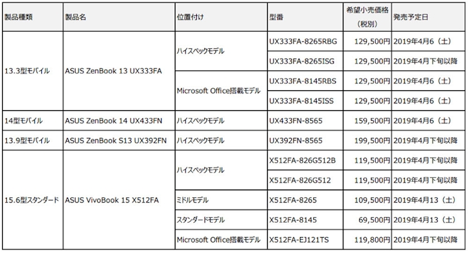 Asus Asus Zenbook S13 Ux392fn などノートpc4製品を発表 日本経済新聞