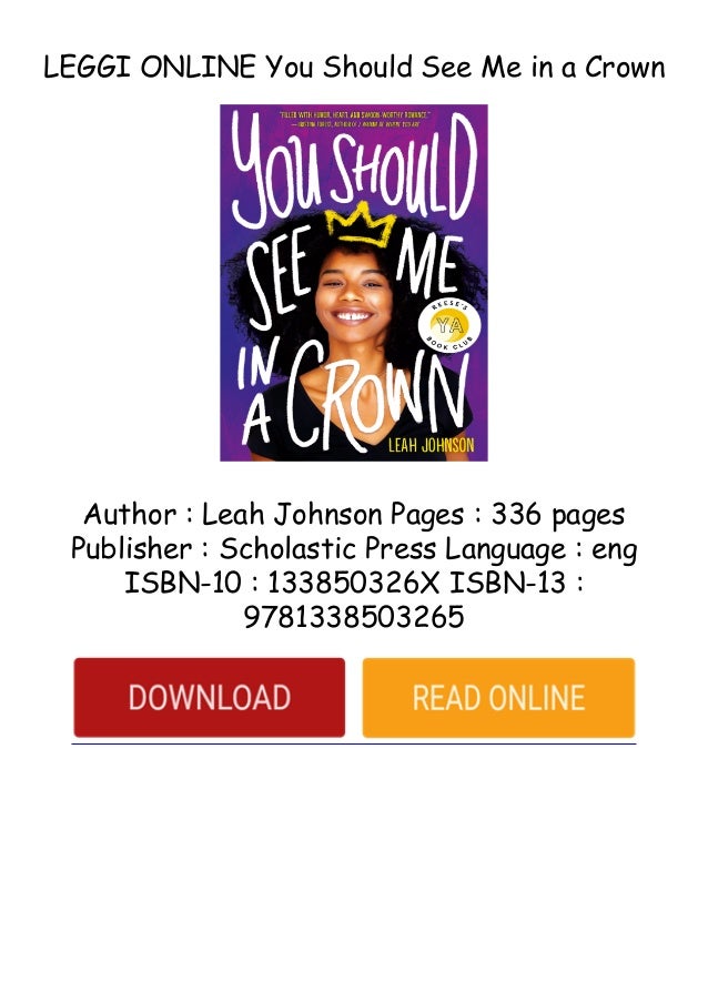 You Should See Me in a Crown by Leah Johnson September 5, August 17, by Classy x Book Reviews GoodReads Summary Liz Lighty has always believed she’s too black, too poor, too awkward to shine in her small, rich, promobsessed midwestern town But it’s okay — Liz has a plan that will get her out of Campbell, Indiana, forever attend the uberelite Pennington College, play in their worldfamous orchestra, and become a doctor. You Should See Me in a Crown is a great read for those looking for a story told from a perspective not often seen in many writings This novel is a lot of things—empowering, thoughtful, witty, warm, feelgood, and one of the best youngadult reads of This content reflects the personal opinions of the author. You Should See Me in a Crown by Leah Johnson Share Images Item #7536 in BookBeat BookBeat;.