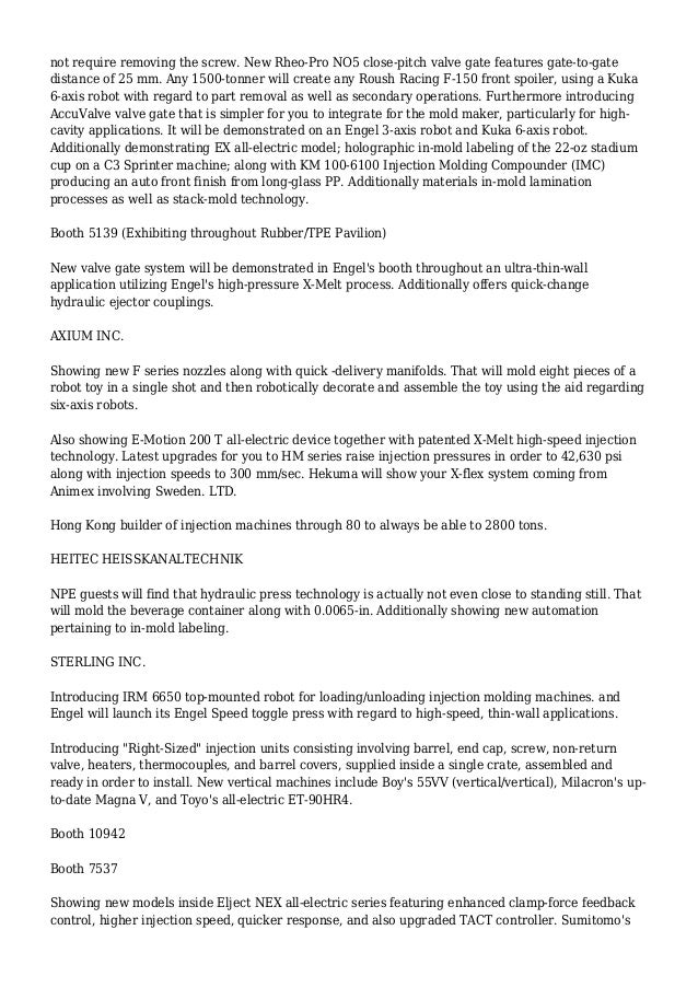 That they can competently administer a Sayana Press injection Steps Observations 1 2 3 1 Places safety box and cotton swabs (optional) within arm’s reach 2 Washes hands (during the training this step may be stated aloud or mimicked rather than actual handwashing) 3 Selects the injection site (and cleans if needed) 4. An CRSFtostoredXSS security bug plagues 50,000 ‘Contact Form 7’ Style users A security bug in Contact Form 7 Style, a WordPress plugin installed on over 50,000 sites, could allow for. The ideal machine concept for every application ENGEL reassures with its experience and knowhow as global market leader in plastics machinery With proven and innovative injection moulding machines from 280 kN to 55,000 kN clamping force, hydraulic, fully electric, horizontal and vertical solutions.