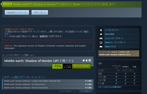 Steam版middle Earth Shadow Of Mordorに公式で日本語版が登場 人生に疲れた男のblog